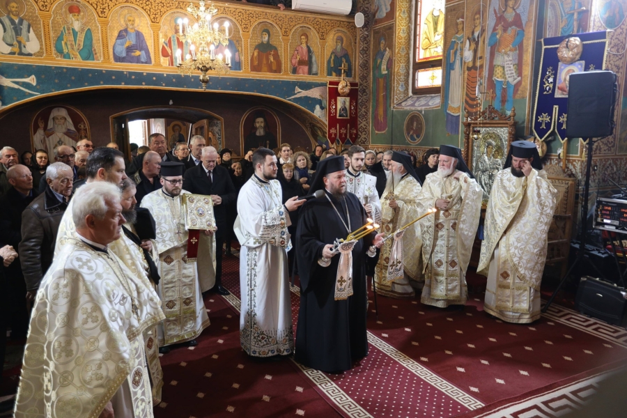 Cu acest prilej, Preasfinția Sa a săvârșit Sfânta și Dumnezeiasca Liturghie în biserica mănăstirii și a rostit un bogat cuvânt de învățătură, în fața credincioșilor și a autorităților locale, după care a oficiat Slujba Parastasului la împlinirea unui an de la trecerea la Domnului a monahului Efrem Bancoș, viețuitor al sfintei mănăstiri. Răspunsurile la strană au fost oferite de membrii Grupului Psaltic „Sfinții Martiri Brâncoveni”.