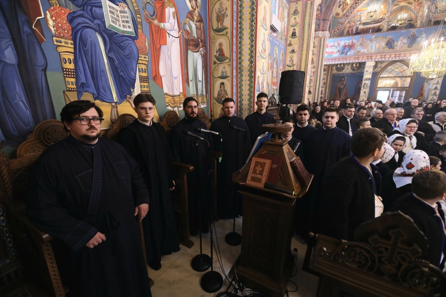 Răspunsurile la strană au fost oferite de membrii Grupului psaltic „Sfinții Martiri Brâncoveni” conduși de Prof. Vlad Pop.
