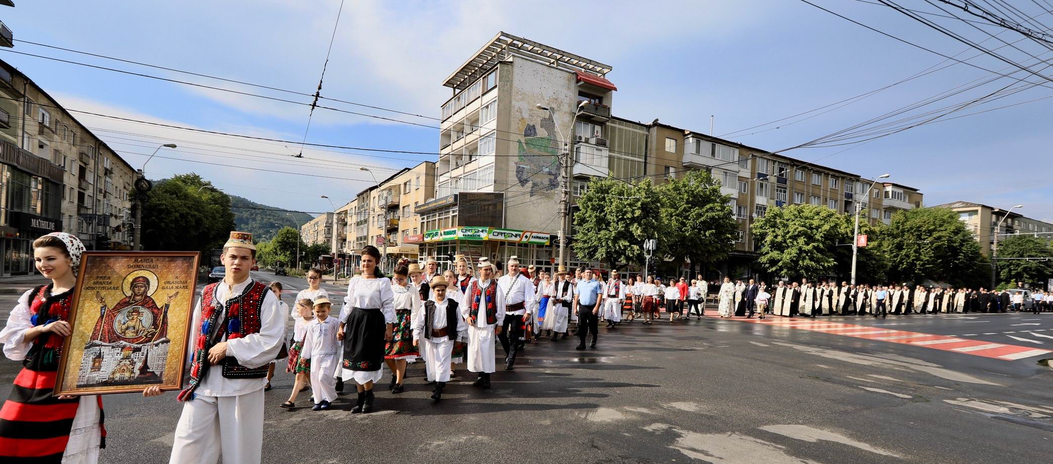 Procesiunea tradiţională de praznicul Pogorârea Sfântului Duh, intitulată „Uniţi, spre Sfânta Treime”, a urmat traseul: Palatul Administrativ – străzile Gheorghe Şincai și Culturii – bulevardele Bucureşti şi Unirii – Catedrala Episcopală.