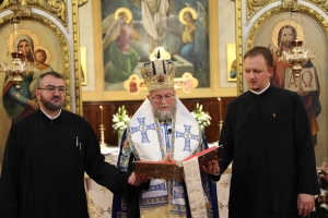 Răspunsurile liturgice au fost date de o parte a membrilor Grupului psaltic „Theologos” al Episcopiei Maramureşului şi Sătmarului, dirijat de Arhid. Prof. Drd. Adrian Dobreanu. La final, Diana Rednic, elevă la Colegiul Național „Vasile Lucaciu” din Baia Mare, a interpretat o cântare bisericească închinată Maicii Domnului.