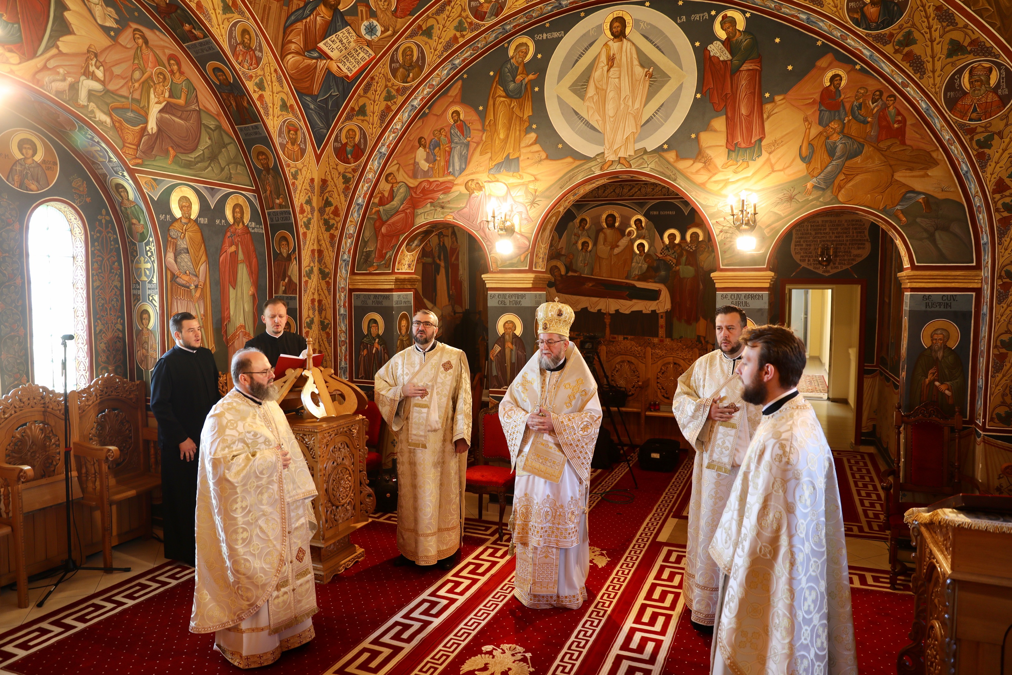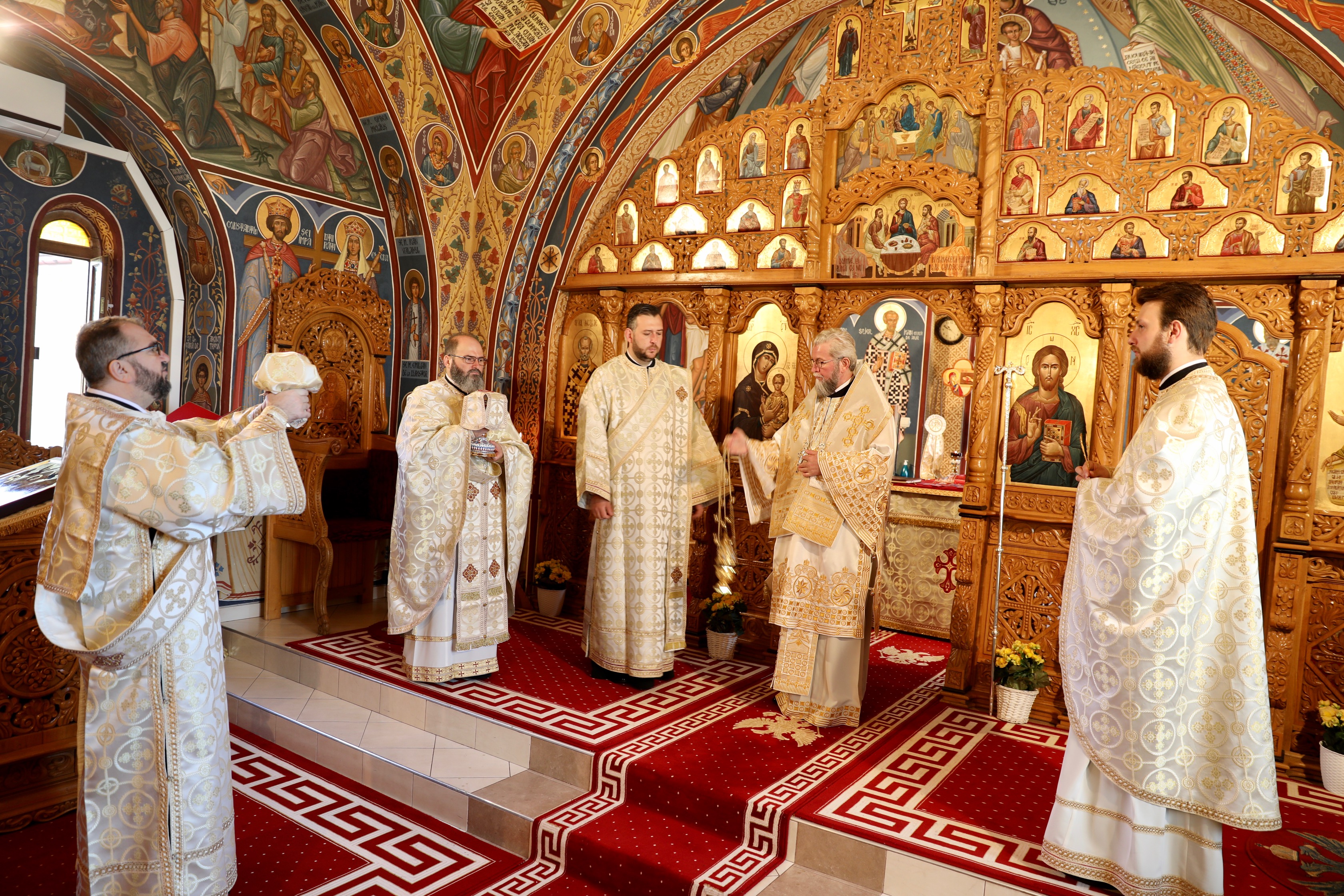 Marți, 21 aprilie, a treia zi a praznicului Învierea Domnului, Preasfințitul Părinte Iustin, Episcopul Maramureșului și Sătmarului, a oficiat Sfânta Liturghie în Paraclisul Episcopal din Baia Mare, în fruntea unui sobor de preoți și diaconi.