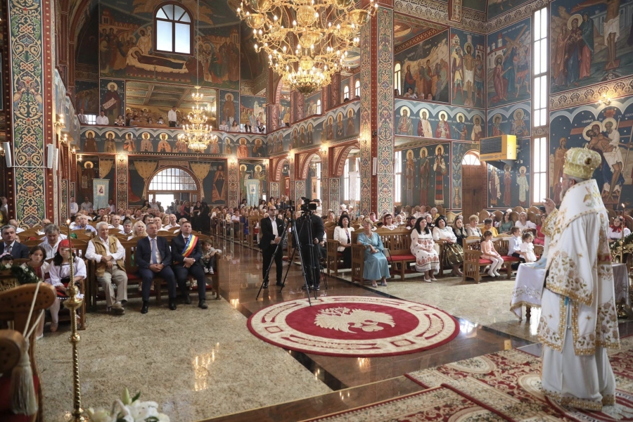 Biserica a început în 1990, sub îndrumarea părintelui Vasile Augustin, care a păstorit aici 30 de ani și a fost încheiată construcția ei, pictura și înzestrarea în 2012, când am și sfințit-o împreună cu Înaltpreasfințitul vrednic de pomenire Părinte Arhiepiscop Justinian. În 2014 a venit aici părintele Adrian Mihali, care mi-a fost diacon 10 ani și este, iată, de 10 ani păstor aici. El a continuat lucrarea frumoasă la această parohie și a recâștigat în proces biserica monument istoric, în 2020, o biserică valoroasă prin susținerea competentă și foarte, foarte eficientă a avocatului Călin Herța, care a reușit să aducă biserica în patrimoniul parohiei și a devenit biserica monument, biserica mamă, un reper, un punct important în viața parohiei.