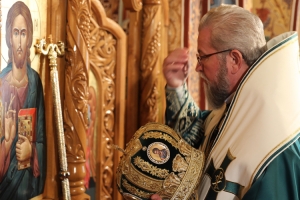 PS Iustin a rostit un cuvânt de învățătură pornind de la Evanghelia praznicului și amintind de tristețea Mântuitorului care știa că se apropie ziua Răstignirii Sale: „Mântuitorul era trist și este și astăzi trist, când noi uităm să-L sărbătorim cum se cuvine, când uităm mesajul existențial, profund, al fiecărui cuvânt, al fiecărui gest, al lucrării Mântuitorului în lume. Toate au un mesaj. Toate au o pedagogie. Mântuitorul a plâns nu numai în fața mormântului lui Lazăr. A plâns când a văzut frumusețea cetății Ierusalimului și a templului, în Săptămâna Patimilor. A zis: Ierusalime, Ierusalime, de câte ori am vrut să adun pe fiii tăi cum adună cloșca puii, dar n-ai primit. Dacă ai fi știut vremea cercetării tale! Iată s-a apropiat vremea pustiei tale și te vor înconjura dușmanii cu un șanț și nu va rămânea din tine piatră pe piatră. Profeția s-a împlinit. În anii ’70, când romanii au distrus Ierusalimul, din care a rămas doar Zidul Plângerii. Și azi Mântuitorul ne întreabă pe fiecare dintre noi: oare ai priceput vremea cercetării tale? Tu, fiecare creștin. Fiecare familie. Fiecare comunitate. Fiecare neam. Pe noi ne-a cercetat Răsăritul cel de Sus. Ne-a cercetat Dumnezeu. Ne-a dăruit lumina Evangheliei. Am devenit creștini. Ne-a luminat. Am fost numiți cu numele lui Hristos. Creștini. Fii ai lui Dumnezeu după har. Ne-a cercetat Dumnezeu. Am cunoscut și cunoaștem vremea cercetării noastre? Da! Am cunoscut-o în istorie, dar de multe ori am abordat-o mai superficial”.
