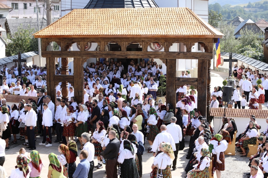 A refăcut pictura integral, a restaurat exteriorul, a refăcut acoperișul, a făcut catapeteasmă nouă, a reorganizat Sfântul Altar, a padimentat biserica, a făcut un cafas nou. Deci, este o altă biserică, propriu-zis, și pentru aceea am venit ca să fim părtași la bucuria lor, să le arătăm prețuire și apreciere, să le aducem binecuvântare părintească și să le arătăm dragostea noastră și să slujim în această minune, care se numește Maramureșul, în Biserica noastră Ortodoxă strămoșească, pe Altarele pe care le construiesc ei atât de minunat, atât de solemn, atât de voievodal, am putea spune, în mijlocul unui popor dreptcredincios și a clerului care duce mai departe candela credinței ortodoxe strămoșești cu multă râvnă.