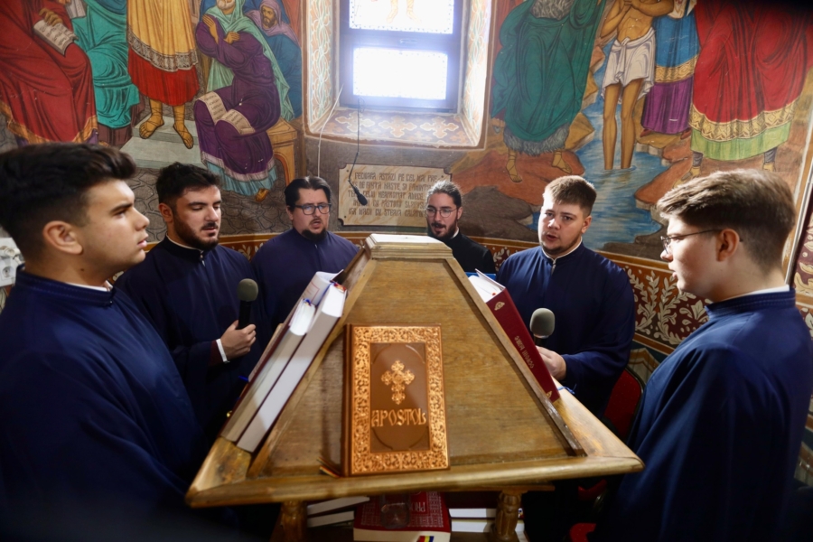Răspunsurile la strană au fost oferite de membrii Grupului psaltic „Sfinții Martiri Brâncoveni”.