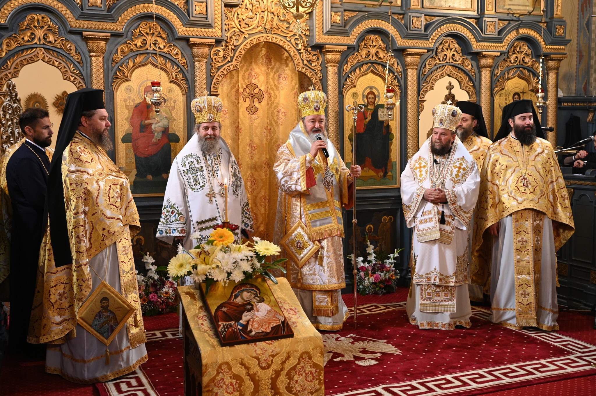 Sfânta și Dumnezeiasca Liturghie a fost săvârșită de trei ierarhi: Preasfințitul Părinte Ieronim, Episcopul Daciei Felix, Preasfințitul Părinte Siluan, Episcopul ortodox român al Ungariei și Preasfințitul Părinte Timotei Sătmăreanul, Arhiereu-vicar al Episcopiei Ortodoxe Române a Maramureșului și Sătmarului, în fruntea unui sobor de preoți și diaconi, si în prezența unui număr mare de credincioși și a autorităților.