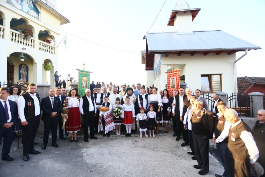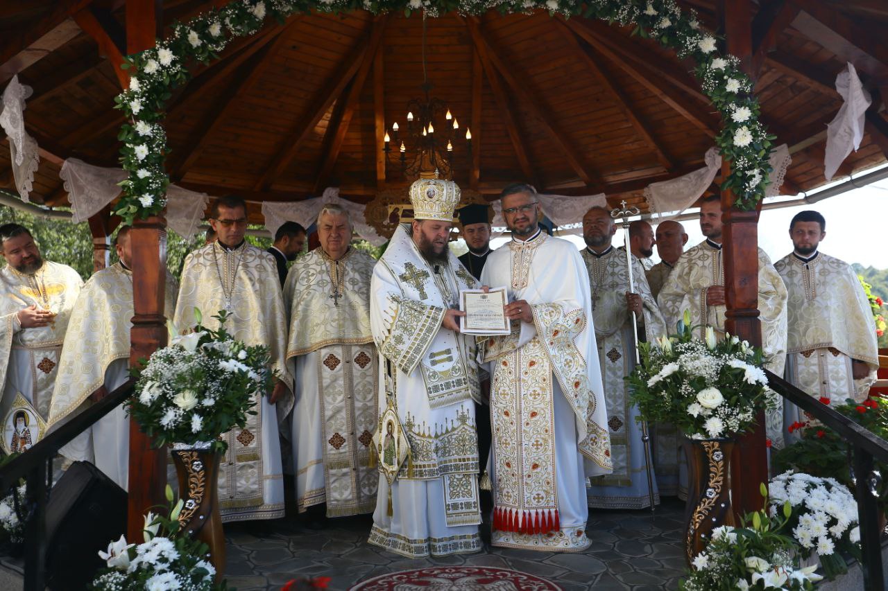 Sfânta Liturghie a fost oficiată la Altarul de vară al parohiei, în prezența autorităților locale și centrale și a numeroșilor credincioși.