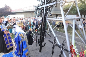 Din soborul slujitor au făcut parte Pr. Ioan Socolan, protopopul Sătmarului, Pr. Sandu Dinu Sabou și Pr. Florin Orășteanu, slujitori în cadrul lăcașului de cult mai sus amintit. De asemenea, PS Timotei Sătmăreanul a sfințit crucile care vor fi așezate pe noua biserică de lemn.
