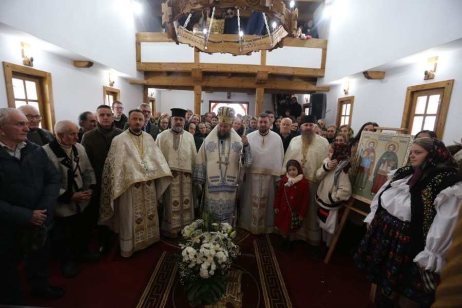 Sfânta și Dumnezeiasca Liturghie a fost oficiată în interiorul lăcașului de cult, în prezența credincioșilor și a autorităților locale.