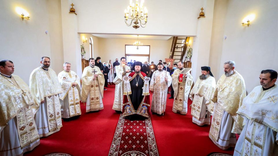 Preasfințitul a săvârșit Sfânta Liturghie înconjurat de un sobor de preoți și diaconi.