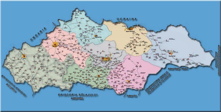 Foto: Harta administrativă a Eparhiei noastre cuprinzând cele opt Protopopiate