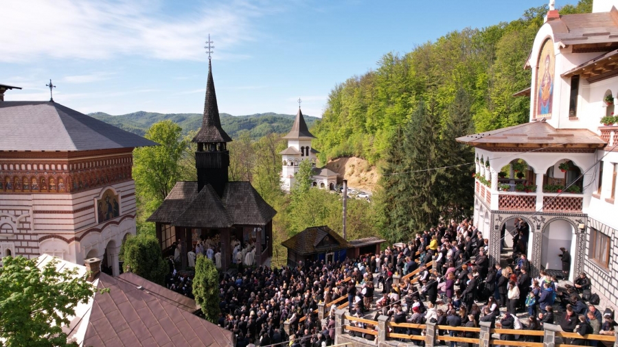 Astăzi am venit să-I aducem mulţumire lui Dumnezeu pentru tot ce s-a petrecut în acest timp, pentru felul în care a lucrat Dumnezeu şi pe acest Munte prin ctitoria noii biserici. Împreună am pornit lucrarea cu Părinţii mănăstirii, cu ucenicii noştri, Centrului Cultural Pastoral şi Monahal „Nicolae Steinhardt” şi tot ce se întâmplă, în aşa fel încât, în 2026, la 100 de ani de la sfinţirea primei biserici, să resfinţim biserica şi ansamblul, dacă Dumnezeu va vrea, cu participarea Preafericitului Patriarh Daniel. Dăm slavă lui Dumnezeu că, iată, astăzi în fruntea noastră se află Mitropolitul Andrei al Clujului, Maramureşului şi Sălajului, care a făcut parte din sobor, între cei şapte Ierarhi şi a rostit cuvânt de învăţătură în duminica aceea, şi care astăzi, iată, este Mitropolitul locului şi a venit împreună cu Preasfinţitul Petroniu al Sălajului, Preasfinţitul Benedict Bistriţeanul, Episcop Vicar al Clujului, suntem noi, Ierarhii locului, iar Preafericitul Patriarh Daniel a trimis un mesaj de felicitare, de încurajare, de întărire şi de preţuire şi Îi mulţumim că l-a trimis ca delegat pe Preasfinţitul Paisie Sinaitul. Dăm slavă lui Dumnezeu pentru credinţa puternică a poporului din această parte de ţară pentru că a rodit toată slujirea IPS Justinian şi a părinţilor de aici şi astăzi lucrarea este pilduitoare şi-L rugăm pe Dumnezeu şi Maica Domnului să-i ocrotească pe părinţi, să-i întărească ca să ducă la bun sfârşit lucrările de aici, să slujească poporul lui Dumnezeu, aşa cum Îl rugăm pe Dumnezeu şi pe Maica Domnului să ne dăruiască nouă celor doi Ierarhi puterea, râvna şi duhul IPS Justinian.