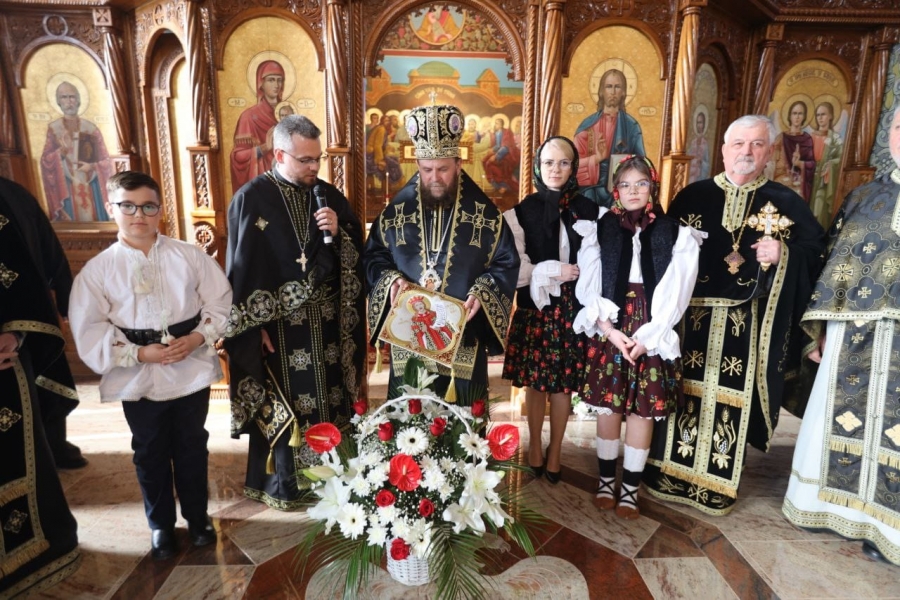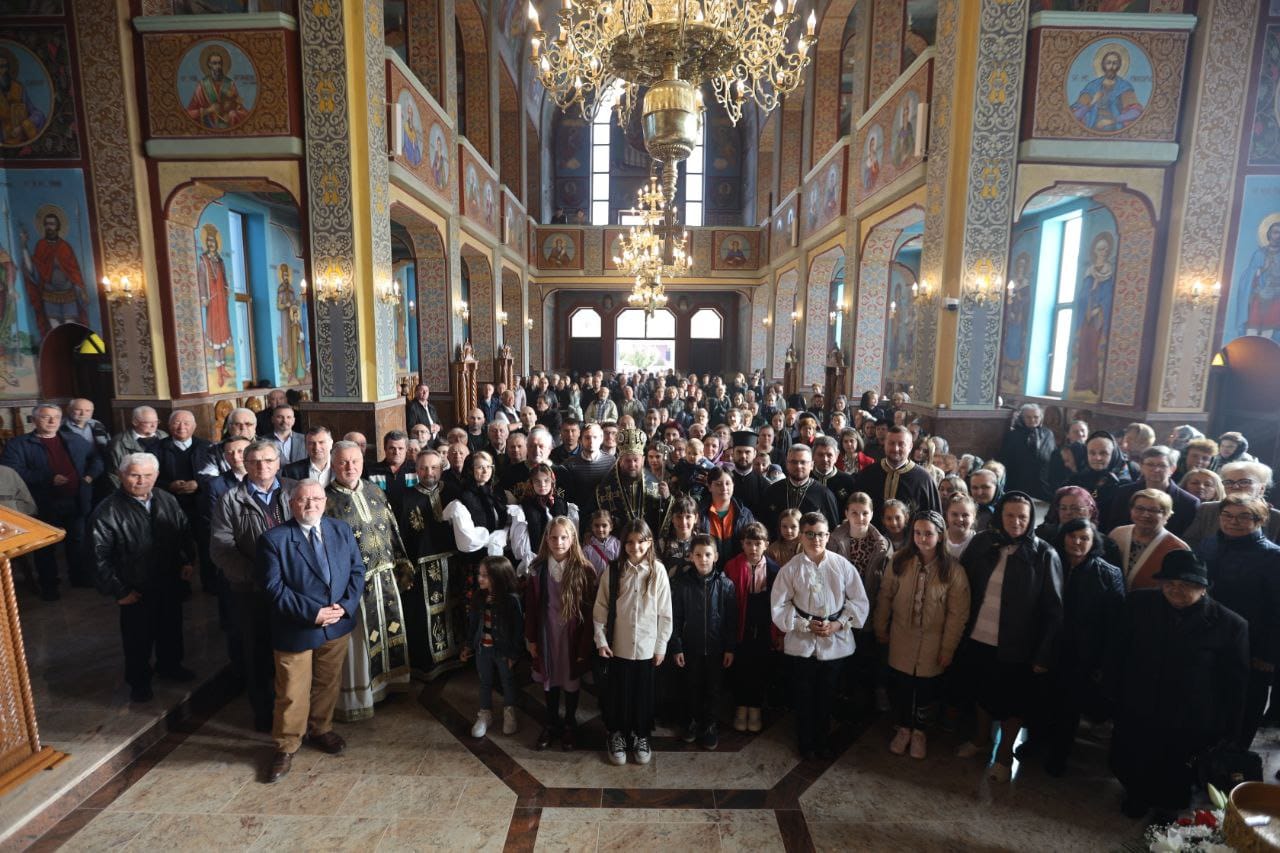 La final, PS Părinte Timotei a primit din partea părintelui paroh Dan Sidău, a preoților slujitori, a Consiliului Parohial și a credincioșilor, o bederniță brodată cu chipul Sfântului Voievod Ștefan cel Mare și un coș cu flori.