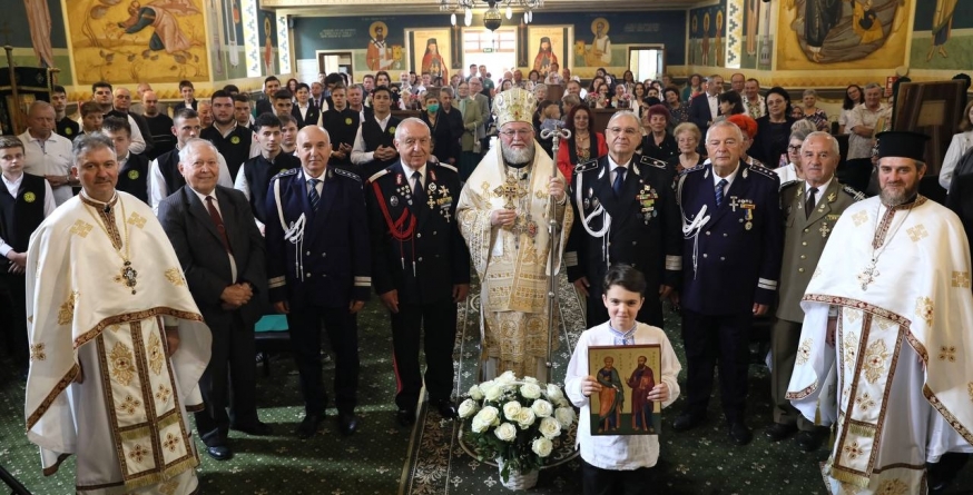 Deci, a avut preoți prestigioși totdeauna. Și Lazăr Marius Jr, fiul părintelui Marius Lazăr, slujește acum aici. În prezent, în biserică se lucrează foarte frumos la pictură, s-a refăcut pictura, era o pictură cam realistă și nu foarte valoroasă, s-a refăcut pictura și se lucrează cu același pictor care va picta Catedrala noastră Episcopală „Sfânta Treime”, pictorul Alexandru Săsărman, o pictură minunată și foarte inspirată, neobizantină, aproape bizantină, și care va împodobi minunat biserica aceasta. Când vor fi terminate lucrările, vom săvârși slujba de sfințire și de resfințire a bisericii și a picturii și a tuturor lucrărilor. Slavă lui Dumnezeu că am revenit și au fost și elevii de fiecare dată, și spunem veșnică pomenire tuturor eroilor și martirilor neamului nostru românesc de acum și până în veac. Amin!”, a precizat PS Iustin.