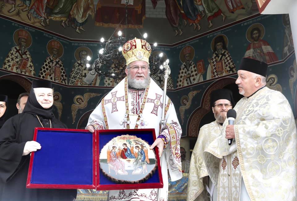 Maica stareţă şi obştea mănăstirii a oferit Preasfinţiei Sale o icoană cu Sfânta Treime, confecţionată în atelierele mănăstirii.