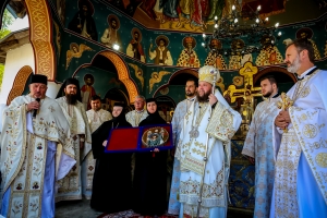 La final, părintele Ioan Pop a mulțumit, în numele obștii monahale in frunte cu monahia Maria Magdalena Drăguș, Preasfinției Sale pentru prezență, slujire și binecuvântare, dăruindu-i o icoană cu chipul Sfântului Proroc Ioan Botezătorul și un coș cu flori.
