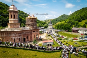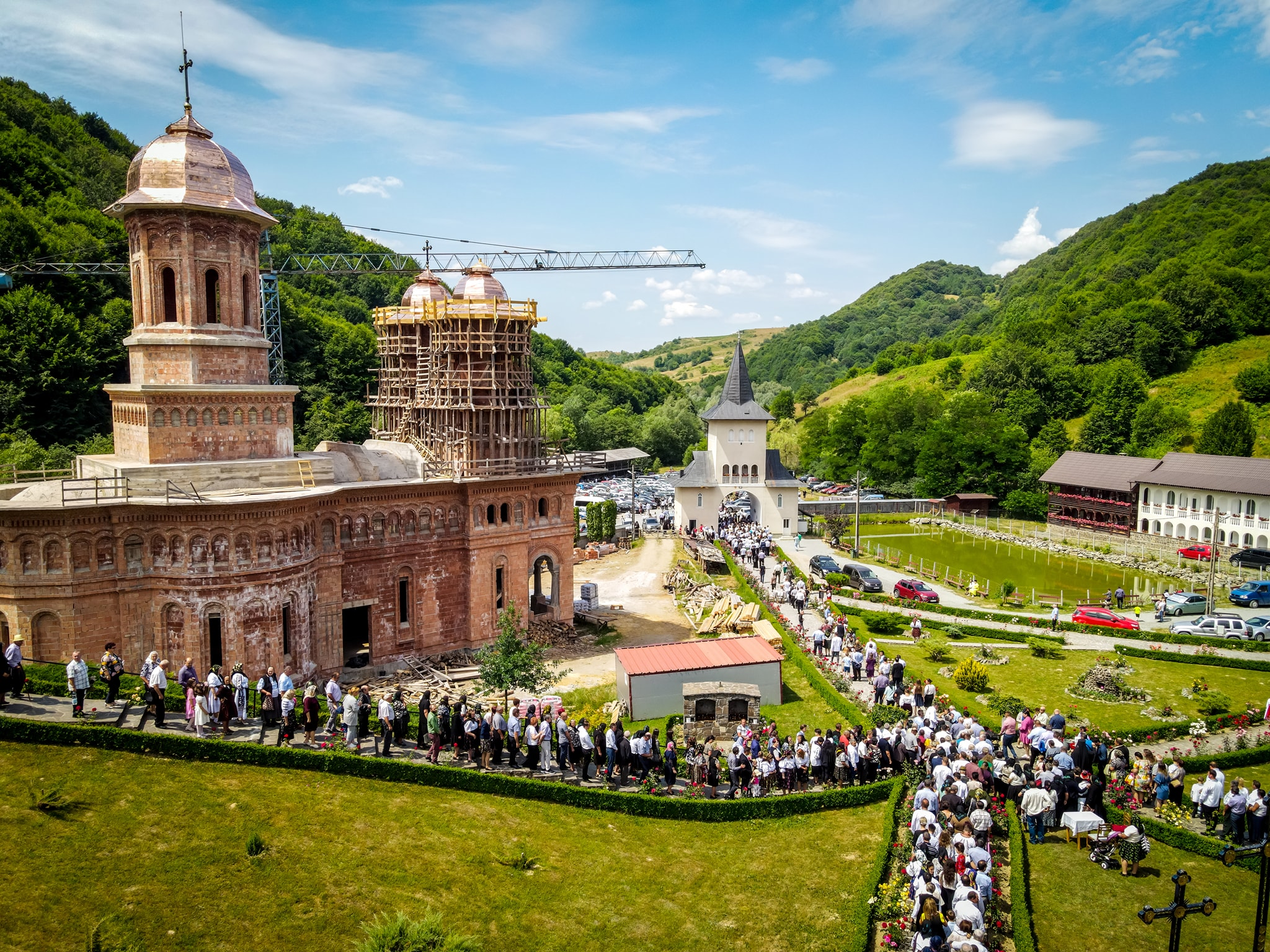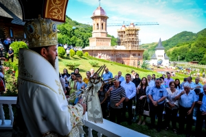 Sfânta și Dumnezeiasca Liturghie a fost oficiată pe Altarul de vară al lăcașului monahal, în prezența unui număr mare de credincioși.