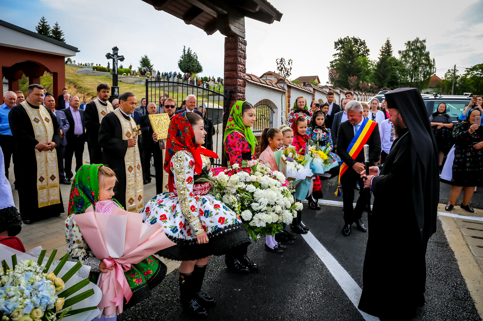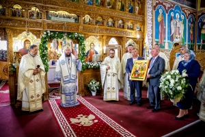 În încheiere, părintele paroh a mulțumit Preasfințitului Părinte Timotei Sătmăreanul pentru prezența în mijlocul credincioșilor și, în semn de mulțumire și recunoștință a dăruit ierarhului o icoană cu hramul bisericii – Nașterea Maicii Domnului – și un coș cu flori.