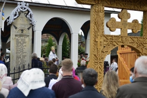 În continuare, în spațiosul pridvor al bisericii, a fost oficiată Sfânta Liturghie, Preasfinției Sale și părintelui paroh alăturându-li-se, în sobor, Pr. dr. Florin Stan, protopopul Lăpușului, Pr. Mihai Gheduțiu, secretarul Protopopiatului Lăpuș, Protos. Ioil Nicoară, starețul Mănăstirii Dealu Mare, Protos. Varlaam China, de la Mănăstirea Rohia, Pr. Claudiu Tuns, fratele părintelui paroh, de la Parohia Coroieni, Arhid. Teodosie Bud, consilier eparhial, Arhid. Ionuț Todorca, consilier eparhial, Arhid. Vlad Verdeș, inspector eparhial, Arhid. dr. Nifon Motogna, administrator al Catedralei „Sfânta Treime” din Baia Mare, alți vrednici slujitori ai Sfintelor Altare. În cadrul Sfintei Liturghii, Preasfințitul Părinte Iustin a înălțat o rugăciune solemnă pentru toți studenții din țara noastră, cu ocazia începerii noului an universitar. Grupul psaltic „Theologos”, al Episcopiei Maramureșului și Sătmarului, dirijat de Arhid. prof. drd. Adrian Dobreanu, a dat liturgicele răspunsuri, iar tânăra interpretă Iulia Ioana Vlad a încântat și ea audiența cu două minunate pricesne.