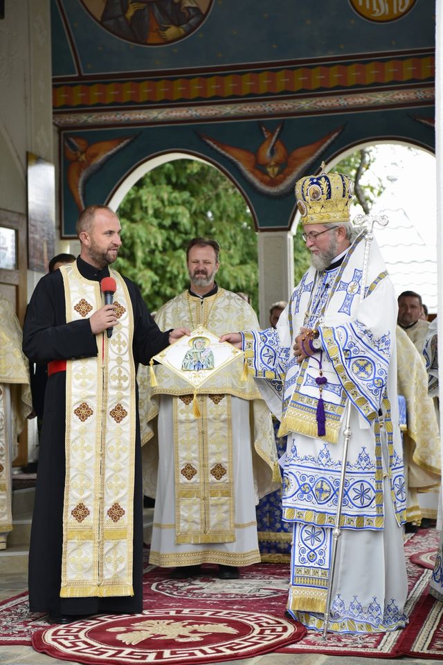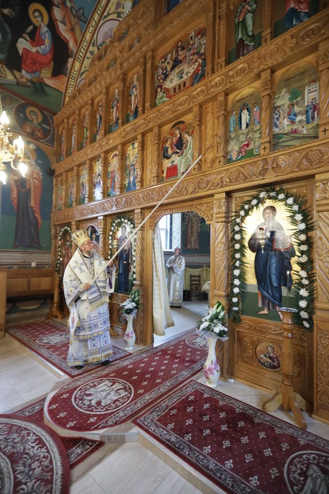 În continuare, în spațiosul pridvor al bisericii, a fost oficiată Sfânta Liturghie, Preasfinției Sale și părintelui paroh alăturându-li-se, în sobor, Pr. dr. Florin Stan, protopopul Lăpușului, Pr. Mihai Gheduțiu, secretarul Protopopiatului Lăpuș, Protos. Ioil Nicoară, starețul Mănăstirii Dealu Mare, Protos. Varlaam China, de la Mănăstirea Rohia, Pr. Claudiu Tuns, fratele părintelui paroh, de la Parohia Coroieni, Arhid. Teodosie Bud, consilier eparhial, Arhid. Ionuț Todorca, consilier eparhial, Arhid. Vlad Verdeș, inspector eparhial, Arhid. dr. Nifon Motogna, administrator al Catedralei „Sfânta Treime” din Baia Mare, alți vrednici slujitori ai Sfintelor Altare. În cadrul Sfintei Liturghii, Preasfințitul Părinte Iustin a înălțat o rugăciune solemnă pentru toți studenții din țara noastră, cu ocazia începerii noului an universitar. Grupul psaltic „Theologos”, al Episcopiei Maramureșului și Sătmarului, dirijat de Arhid. prof. drd. Adrian Dobreanu, a dat liturgicele răspunsuri, iar tânăra interpretă Iulia Ioana Vlad a încântat și ea audiența cu două minunate pricesne.