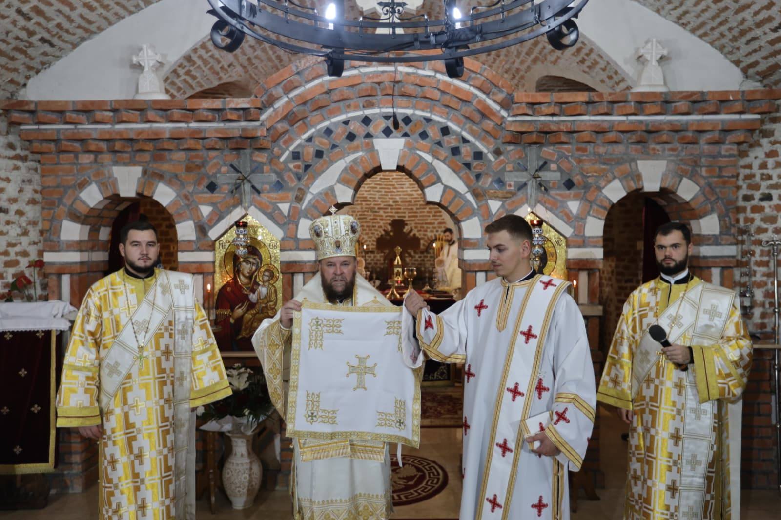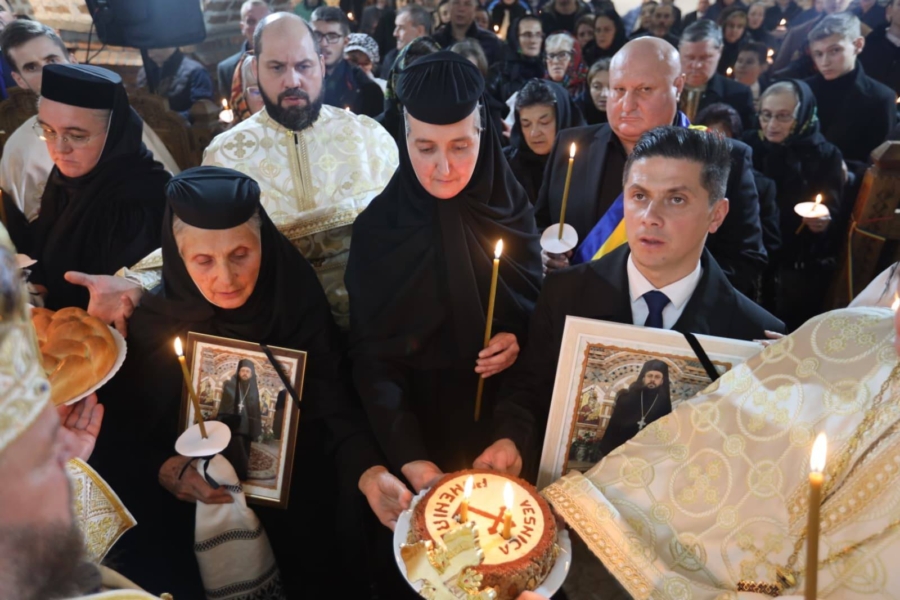 Cu acest prilej, în prezența credincioșilor și a autorităților locale, ierarhul a săvârșit Sfânta și Dumnezeiasca Liturghie și a oficiat Slujba Parastasului la împlinirea unui an de la trecerea la cele veșnice a Protosinghelului Nicolae Tat, cel care a fost duhovnicul mănăstirii.