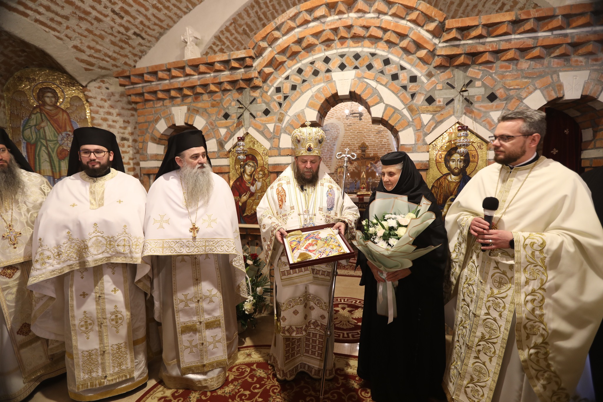 Cu acest prilej, Preasfinția Sa a săvârșit, în biserica mănăstirii, Sfânta și Dumnezeiasca Liturghie în fruntea unui sobor de preoți și diaconi, a hirotonit întru preot pe noul duhovnic al sfintei mănăstiri, a rostit un bogat cuvânt de învățătură, iar la final a oficiat o slujbă pe pomenire pentru părintele protosinghel Nicolae Tat, fostul duhovnic, care a trecut la cele veșnice la data de 4 decembrie 2024.