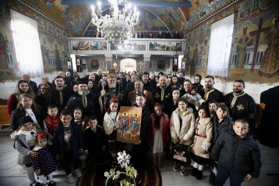 La final, părintele paroh a mulțumit Preasfințitului Părinte Episcop Iustin pentru prezența în mijlocul credincioșilor și pentru slujire, și, în semn de recunoștință și prețuire a oferit Preasfinției Sale o icoană pictată cu chipul Sfinților Arhangheli Mihail și Gavriil, ocrotitorii duhovnicești ai parohiei și un coș cu flori, informează pr. Adrian Dobreanu.