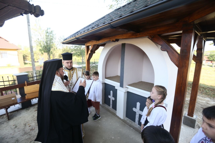 Cu această ocazie, Preasfinția Sa a binecuvântat un lumânărar și capela mortuară care este parte integrantă a Proiectului Eparhial implementat în contextul Anului Comemorativ 2021 al celor adormiți în Domnul, și care e intitulat „Nicio comunitate parohială fără capela mortuară”.
