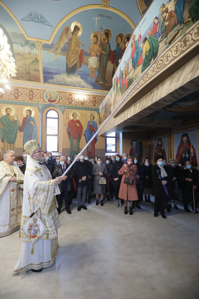 În ziua de 18 octombrie 2020, Preasfințitul Părinte Iustin, Episcopul Maramureșului și Sătmarului, a venit să târnosească ctitoria de suflet a vicenilor. Cu această ocazie, bisericii i-a fost dăruit și un al doilea hram, „Schimbarea la Față”. După slujba de sfințire, în spațiosul Altar deschis, amenajat cu această ocazie, a fost săvârșită Sfânta Liturghie, din sobor amintindu-i pe Arhim. Pantelimon Ilieș, de la Mănăstirea Rohia, Pr. Nicolae Petruș, protopopul Chioarului, Pr. Dr. Nicolae Lauruc, consilier al Vicariatului Ortodox Ucrainean, Pr. Ciprian Coza, secretarul Protopopiatului Chioar, Arhid. Teodosie Bud, consilier eparhial, Arhid. Ionuț Todorca, consilier eparhial, Arhid. Dr. Nifon Motogna, administratorul Catedralei Episcopale „Sfânta Treime” din Baia Mare. Grupul psaltic „Theologos” al Episcopiei, dirijat de Arhid. Prof. Drd. Adrian Dobreanu, a dat liturgicele răspunsuri, iar pricesnele au fost interpretate de cunoscutul solist de muzică populară Ionuț Uivaroși.
