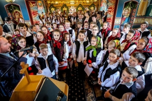 Răspunsurile la Sfânta Liturghie au fost date de Cvartetul „Angelos”. La momentul Chinonicului a cântat Alexandra Bodea, elevă la Colegiul Național „Mihai Eminescu” din Baia Mare, membră a ATOCEM și al Corului de copii si tineri „Gaudium”, cu o voce deosebită, și un grup de copii coordonați de către prof. Gheorghe Tăut.