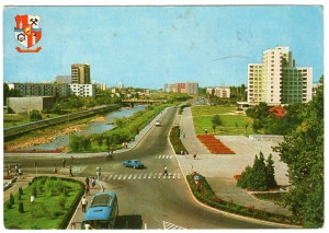 Baia Mare, anii ’80, fotografie carte poștală, vedere zona podului Culturii, realizată din Hotelul Carpați