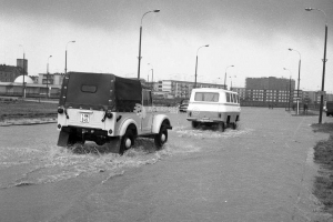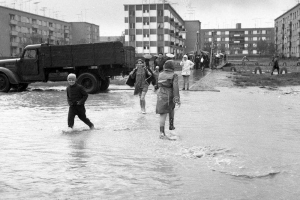 Totuși, mai multe zone joase, situate în proximitatea albiei râului Săsar, au fost inundate în perioada 13-14 mai, după cum se poate vedea în imaginile de arhivă ale agenției Agerpres. Este de remarcat faptul că în zona RFN nu exista altă cale de acces peste râul Săsar în afara punții pietonale situate în capătul străzii Caragiale, la intersecția cu viitorul bulevard Independenței (vezi poza deschidere material). Puntea lega malul drept al râului Săsar de cel stâng, unde se află blocurile de pe Coșbuc. Pe partea cu Caragiale blocurile erau relativ noi, fiind construite în prima jumătate a deceniului anterior. La fel și cele de pe Coșbuc. Se poate vedea cât de mare era nivelul apei și cum oamenii erau nevoiți să circule în condiții extrem de dificile, în condițiile în care nivelul apei era uriaș. Acest lucru este și mai vizibil în fotografia care ilustrează perimetrul din zona Buclă de azi către podul Culturii (vezi foto de mai sus). Cizmele de cauciuc erau un must-have în Baia Mare, atunci, așa cum sunt, astăzi, măștile de protecție. Așadar, perioada a fost una deosebit de dificilă pentru maramureșeni și, de altfel, pentru toți compatrioții noștri.