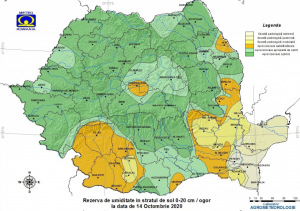 La data de 14 Octombrie 2020, rezerva de umiditate în stratul de sol 0-20 cm (ogor), se