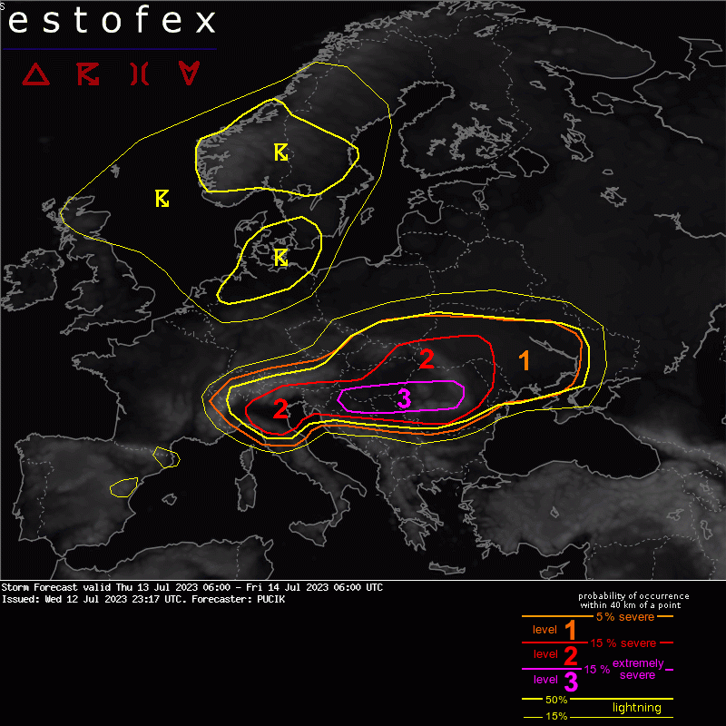 Platforma Estofex indică și risc de tornadă (risc tornadic) 2 în aria maramureșeană în cursul zilei de 13 iulie. Această estimare a Estofex, care este, de fapt, prognoză experimentală, indică faptul că vom avea rafale de vânt puternice, precipitații însemnate cantitativ și grindină de dimensiuni medii. Această alertă este valabilă până în dimineața de 14 iulie, la ora 09.00, arată estimarea serviciului Estofex.
