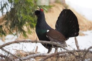 Rotitul cocoșului de munte, în fotografii frumoase realizate de Septimiu Bizo în pădurile din Parcul Național Munții Rodnei. Acestea este un fenomen caracteristic de împerechere în fiecare primăvară.