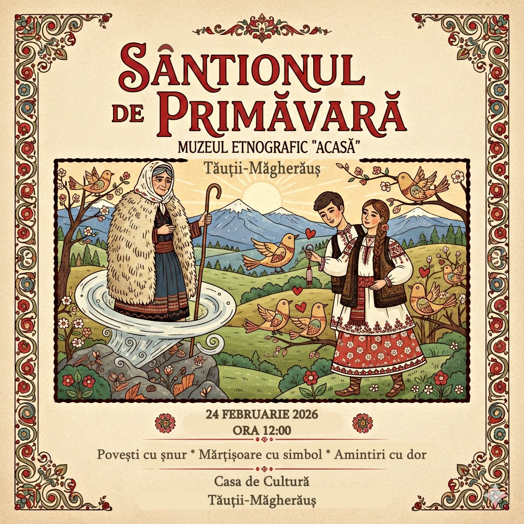 Muzeul „ACASĂ” Tăuții Măgherăuș organizează, pe 24 februarie, de la ora 12:00, evenimentul „Sântionul de Primăvară”, un prilej de celebrare a tradițiilor locale și a începutului de primăvară. Activitățile se vor desfășura la Casa de Cultură din oraș.