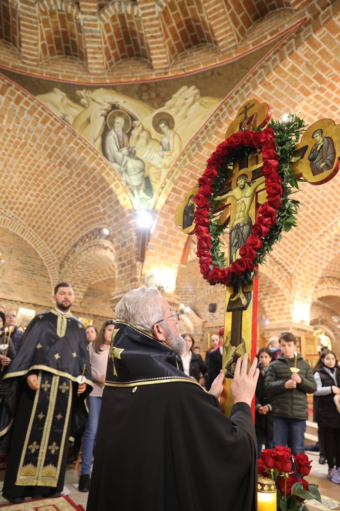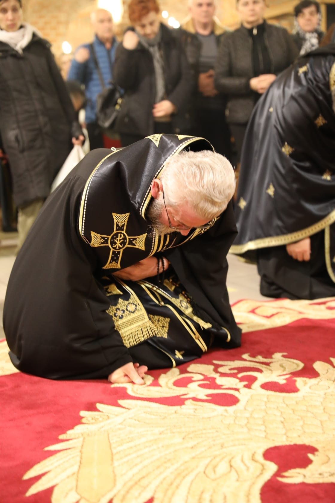 Răspunsurile au fost date de arhidiaconii, diaconii şi teologii de la strana Catedralei Episcopale „Sfânta Treime” din Baia Mare. La mijlocul citirii celor 12 Evanghelii, Preasfinţitul Părinte Iustin a ridicat Sfânta Cruce din spatele Sfintei Mese a Sfântului Altar şi a dus-o pe umăr, într-o procesiune în interiorul Catedralei, precum Mântuitorul pe Golgota, şi a şezat-o în mijlocul sfântului locaş de închinare, după care s-a închinat şi a făcut trei metanii. La fel s-au închinat şi au făcut metanii şi credincioşii din biserică. În încheiere, Preasfinţia Sa a rostit un scurt cuvânt duhovnicesc şi a făcut credincioşilor mai multe comunicări de ordin administrativ, în ceea priveşte perioada prepascală şi cea pascală, arată Andrei Fărcaş, redactor la revista „Graiul Bisericii Noastre”