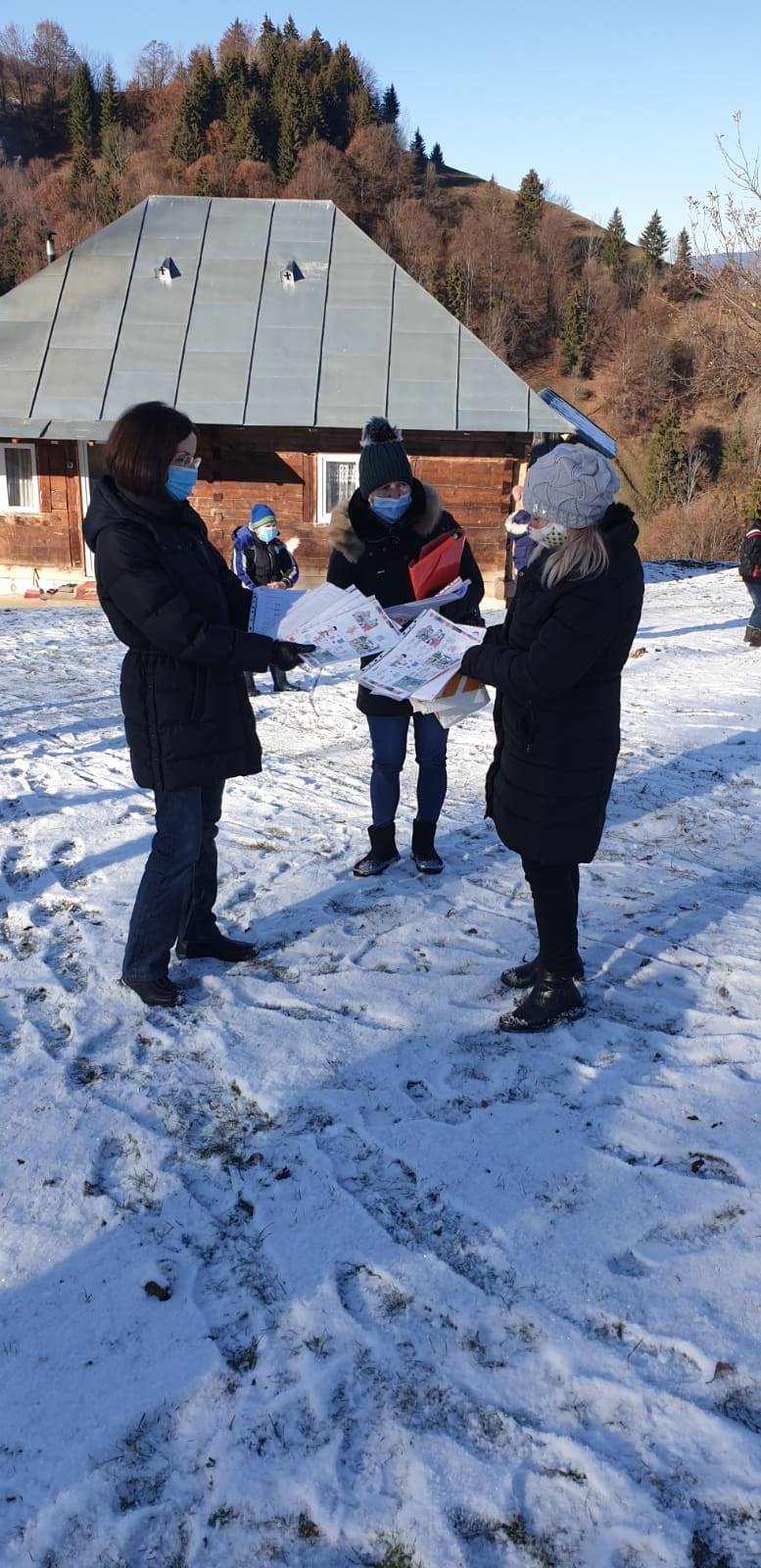 Școala în timp de pandemie: Eforturi uriașe în cătunul Cornățea din Poienile de sub Munte, în plină iarnă, pentru ca educația să continue (FOTO)