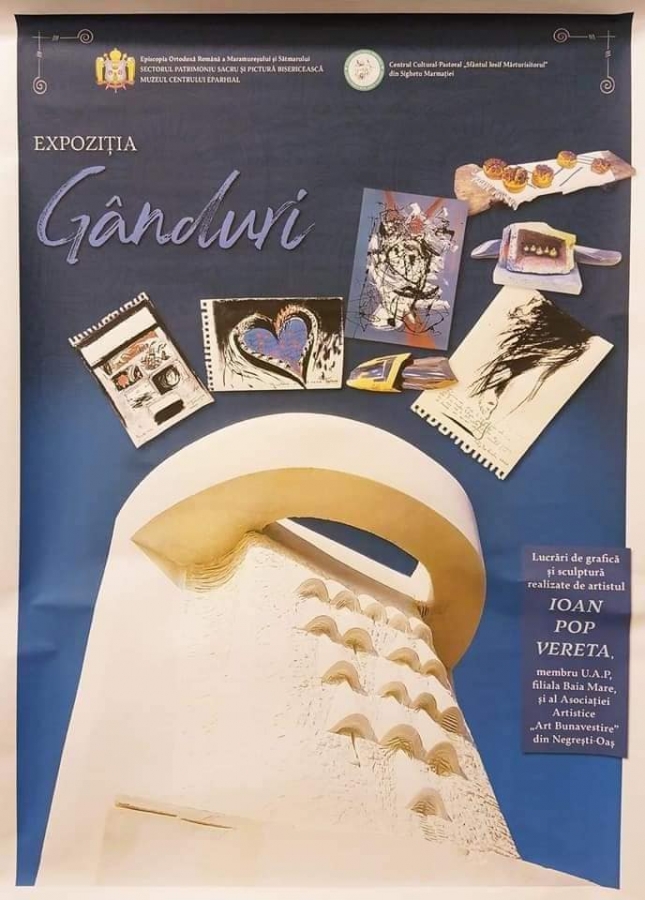 Cei care trec în această perioadă pragul Centrului Cultural Pastoral Sfântul „Iosif Mărturisitorul” din Sighetu Marmației au ocazia să admire expoziția temporară cu lucrări de sculptură „Gânduri”, semnată de Ioan Pop Vereta.