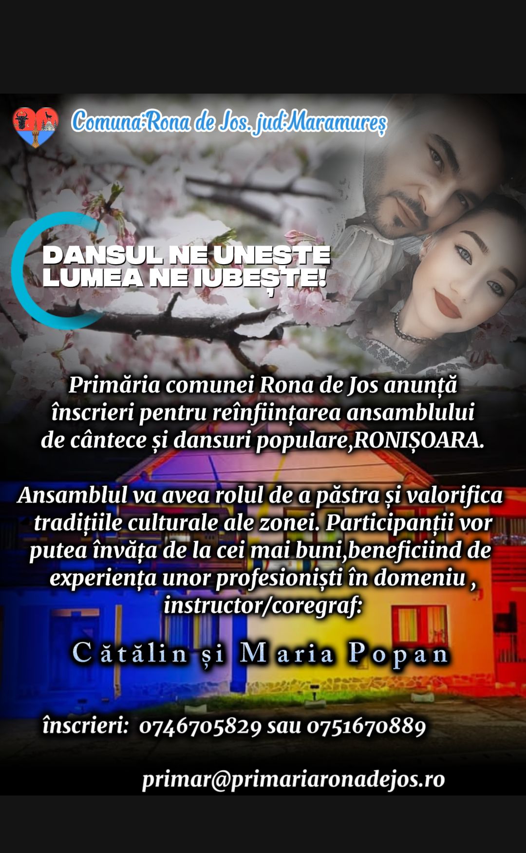 În Rona de Jos se dorește reînființarea Ansamblului folcloric „Ronișoara”.