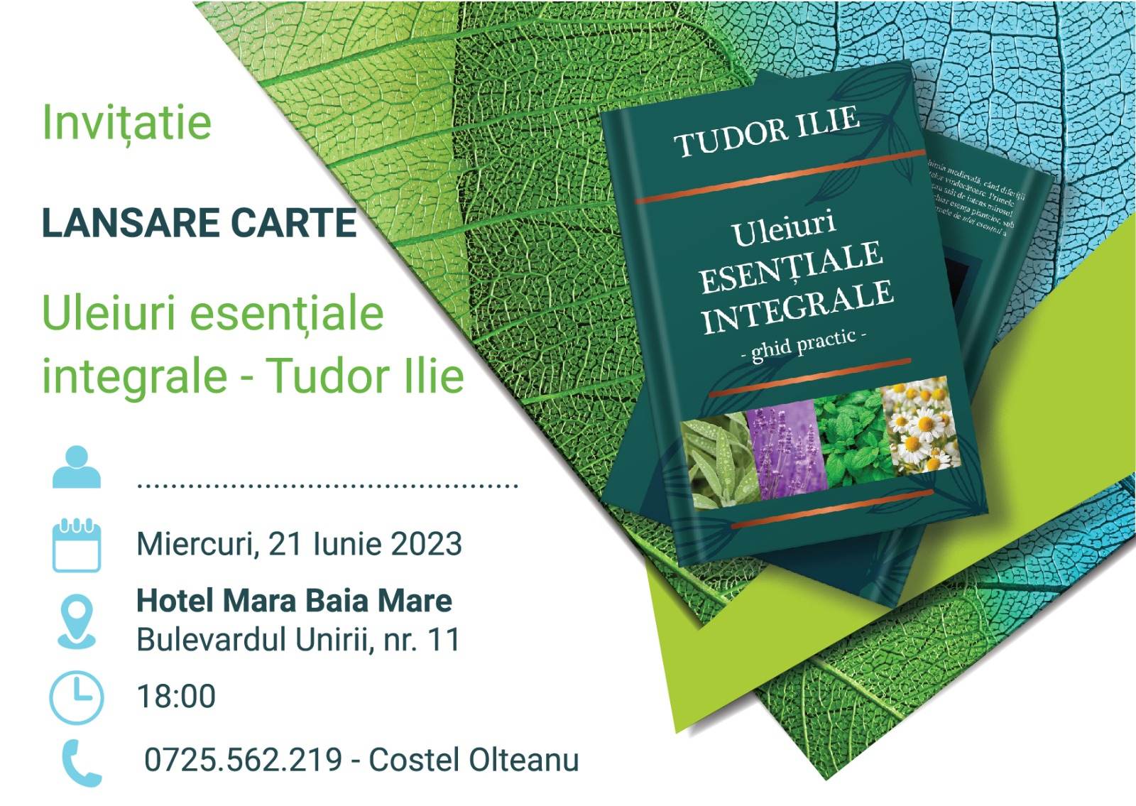 Miercuri, 21 iunie 2023, va avea loc lansarea cărții „Uleiuri esențiale integrale”, semnată de Tudor Ilie. Evenimentul lansării acestui ghid practic va avea loc la Hotel Mara, bulevardul Unirii, nr.11, începând cu ora 18.00. Informații de contact: 0725.562.219, Costel Olteanu.