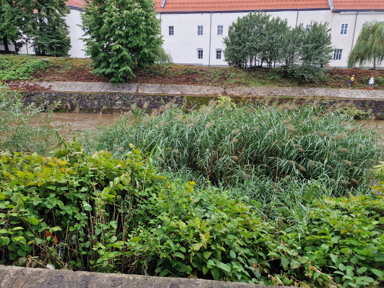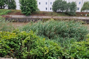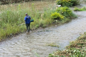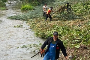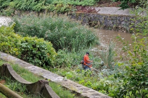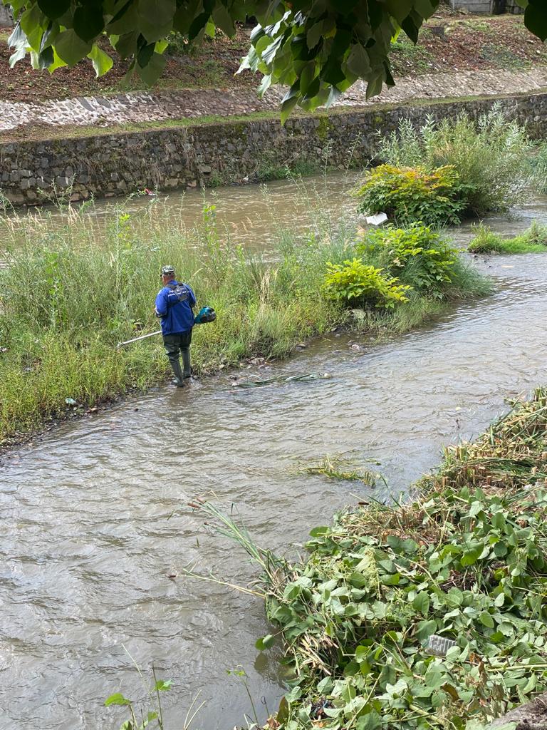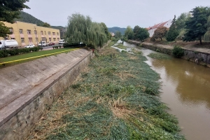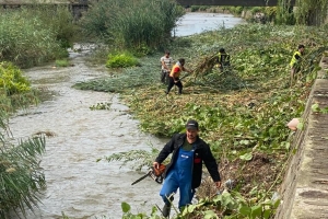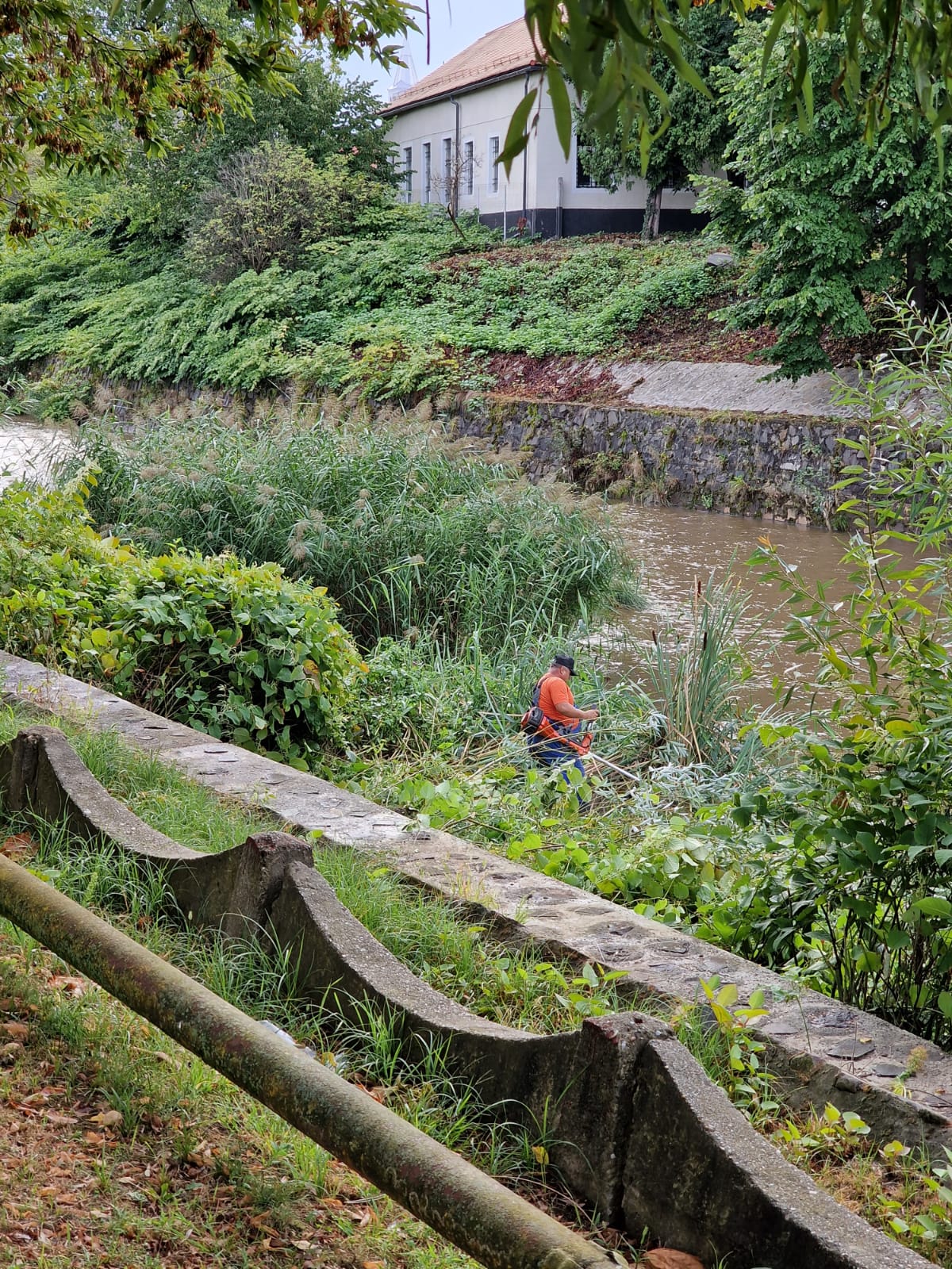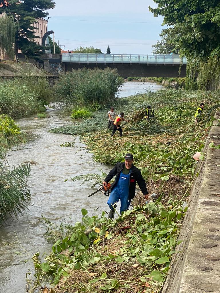 Miercuri, 30 august 2023, lucrători din cadrul Sistemului de Gospodărire a Apelor Maramureș intervin pe râul Săsar, în municipiul Baia Mare, pentru întreținerea covorului vegetal, cosiri și îndepărtarea vegetației.
