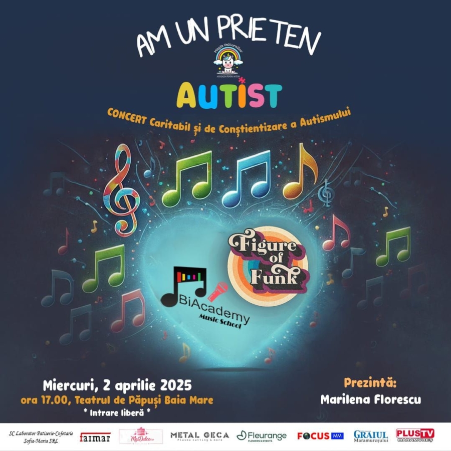 Miercuri, 2 aprilie de la ora 17:00, Asociatia pentru Autism Magia Unicornilor organizează cea de-a doua ediție a Concertului Caritabil „Am un Prieten Autist”, la Teatrul Municipal Baia Mare – Secția Păpuși.