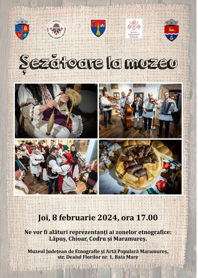 Joi, 8 februarie, de la ora 17.00, la Muzeul Județean de Etnografie și Artă Populară Maramureș (Baia Mare, str. Dealul Florilor, nr.1) va avea loc cea de-a VII-a ediție a îndăgitului eveniment „Șezătoare la muzeu”.