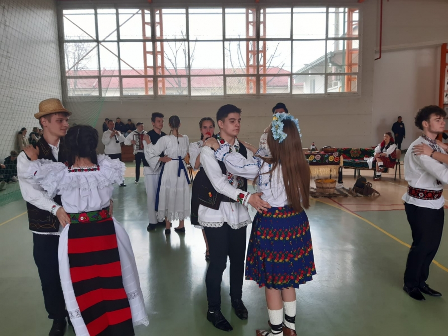 Elevii, îmbrăcați în straie populare, au prezentat dansuri, cântece, obiceiuri și tradiții folclorice. N-au lipsit nici produsele tradiționale, iar decorul a fost și el cât de poate de autentic având în vedere locația.