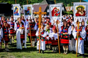 Preasfințitul Părinte Timotei Sătmăreanul a fost întâmpinat cu multă bucurie la poarta de intrare a lăcașului de închinare de către coconii și tinerii îmbrăcați în frumoasele straie populare, cu prapori și icoane, interpretând cântările specifice Procesiei, până în fața bisericii: „așa sunt îngerii lui Dumnezeu din ceruri, asemenea acestor copii minunați, ce stau cuminți pe treptele bisericii, și pe care îi putem numi arhangheli ai Sionului”, a menționat Preasfințitul Părinte Timotei Sătmăreanul.