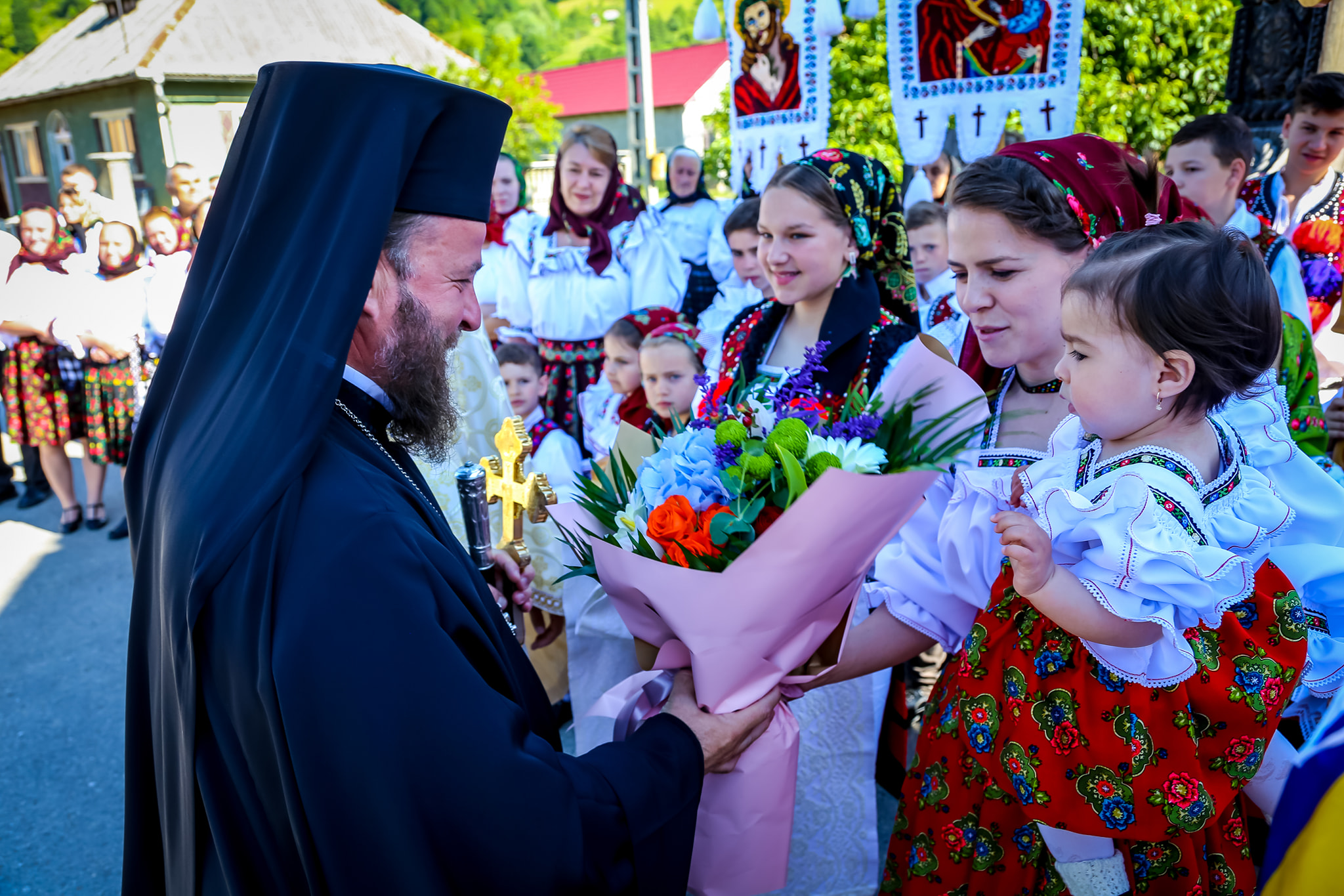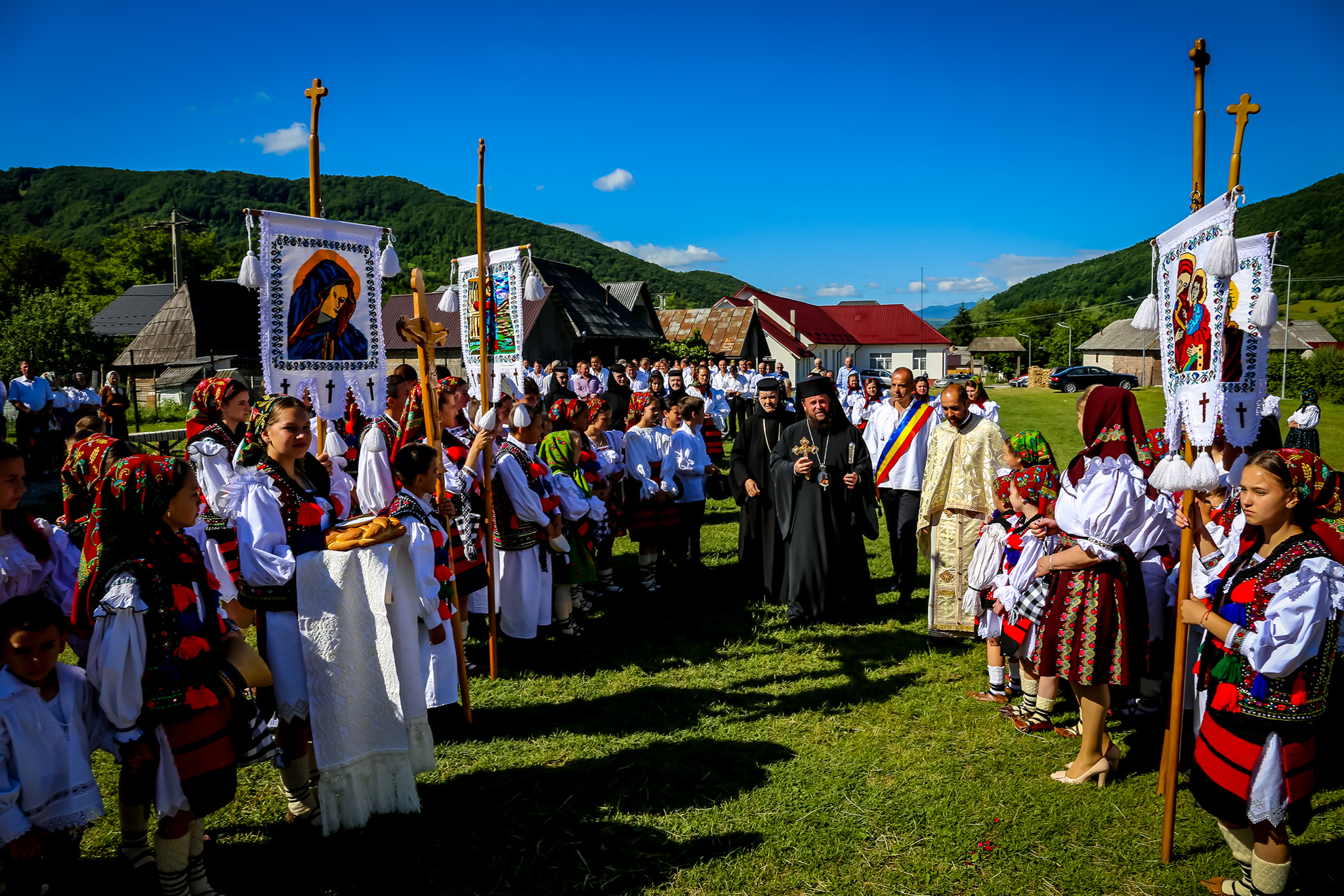 Preasfințitul Părinte Timotei Sătmăreanul a fost întâmpinat cu multă bucurie la poarta de intrare a lăcașului de închinare de către coconii și tinerii îmbrăcați în frumoasele straie populare, cu prapori și icoane, interpretând cântările specifice Procesiei, până în fața bisericii: „așa sunt îngerii lui Dumnezeu din ceruri, asemenea acestor copii minunați, ce stau cuminți pe treptele bisericii, și pe care îi putem numi arhangheli ai Sionului”, a menționat Preasfințitul Părinte Timotei Sătmăreanul.