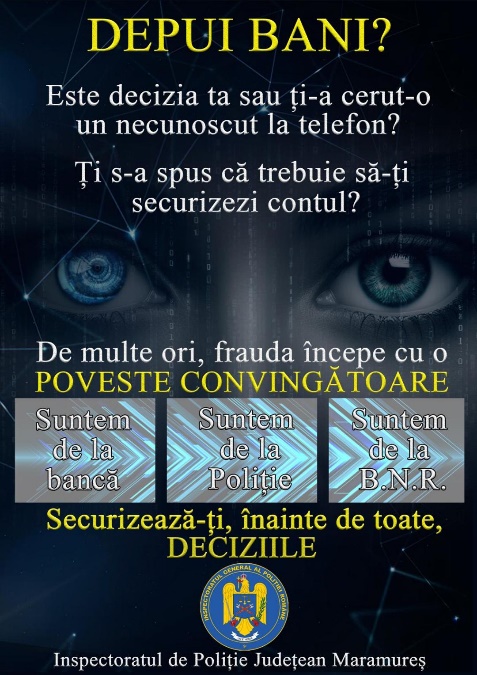 „Internetul ascunde și riscuri semnificative care pot afecta siguranța, viața privată și chiar sănătatea mentală. În spatele anonimatului conferit de mediul virtual există oameni care profită de alți oameni. Și astfel ajungem să discutăm despre criminalitatea informatică”, transmite IPJ Maramureș, care enumeră principalele probleme ce pot apărea în spațiul virtual: