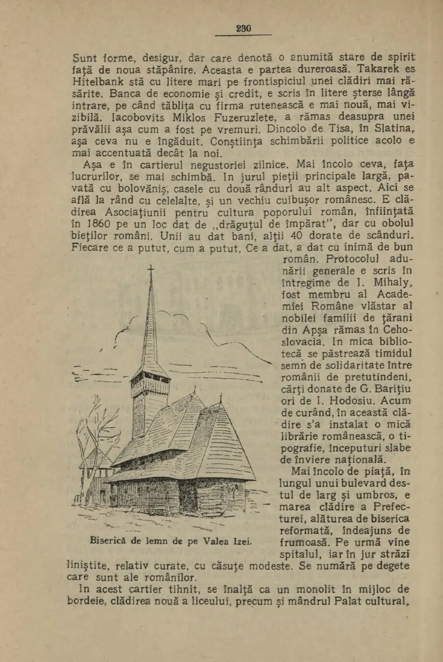 Autorul descrie și principalele locuri de adunare din orașul Sighetu Marmației și vorbește și despre Palatul Culturii. „În acest cartier tihnit, se înalță ca un monolit în mijloc de bordeie, noua clădire a liceului, precum și mândrul Palat Cultural, care mi-a plăcut mai mult decât cel din Tg-Murăș, deși nici comparație nu poate fi făcută în ce privesc dimensiunile și podoaba. E luminos, simplu, fără zorzoane, care stă mai bine pentru un templu al culturii și la unison cu frumusețea blândă a naturii, din cadrul orașului”, mai arată Ion Simionescu. Puteți citi întreaga descriere a orașului maramureșean, după galeria foto! Iar descrierea despre Baia Mare este AICI!