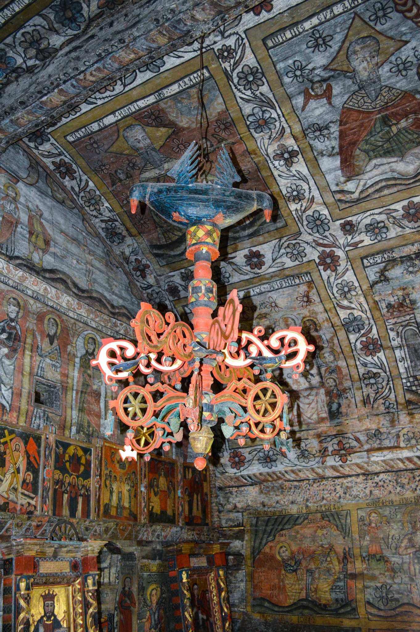 Biserica e formată din pronaos, naos și altar. La exterior, este bogat decorată, începând de la tocul masiv al ușii, o cruce mare de lemn sculptată și brâul–funie răsucit, având simbolul solar. Particular acestei biserici, sunt capetele de grinzi care susțin streașina, cioplite în forma capului de cal. Acoperișul este asimetric pentru a proteja Masa Moșilor aflată de-a lungul peretelui nordic.